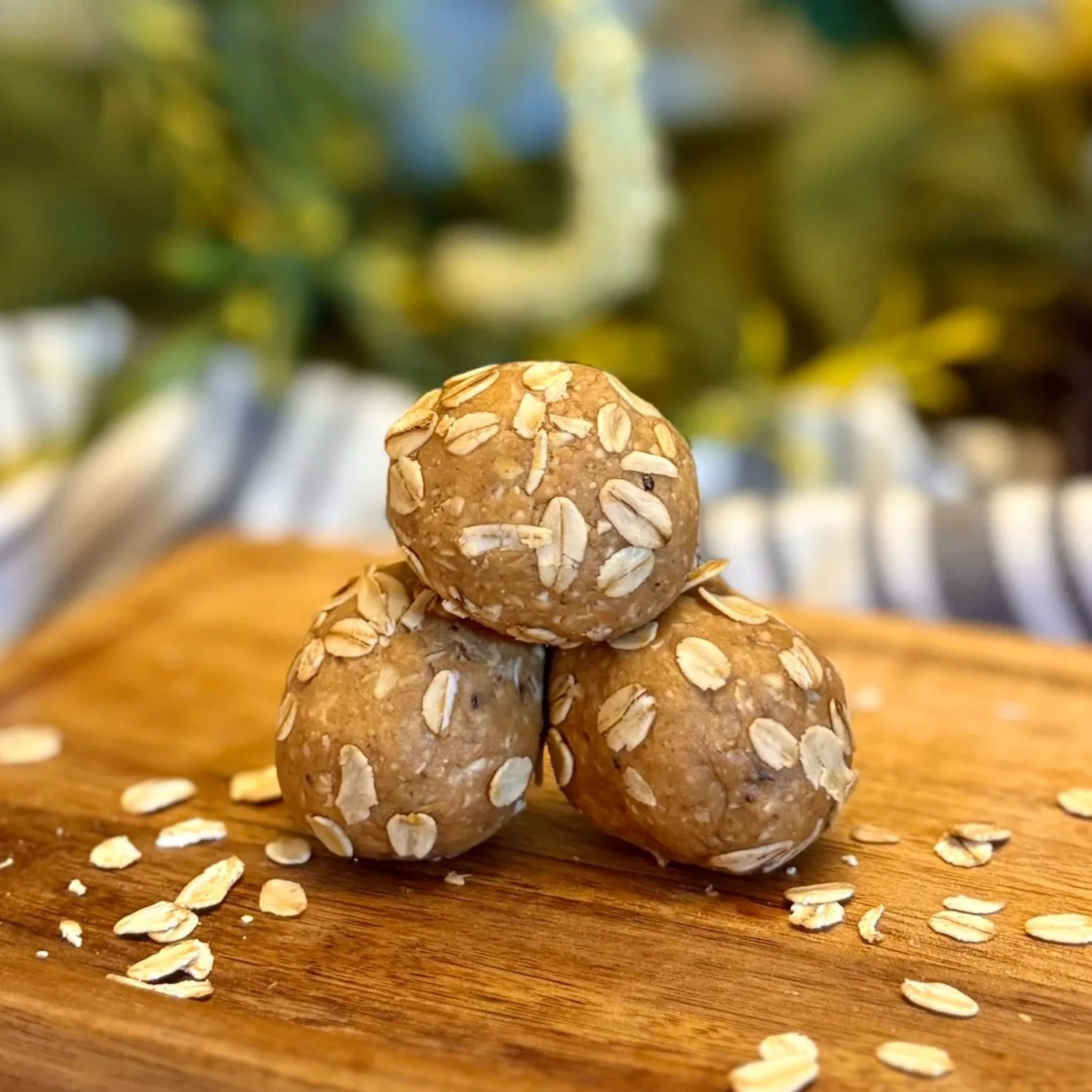 Oats, peanut butter, vegan vanilla protein powder, honey, chia seeds