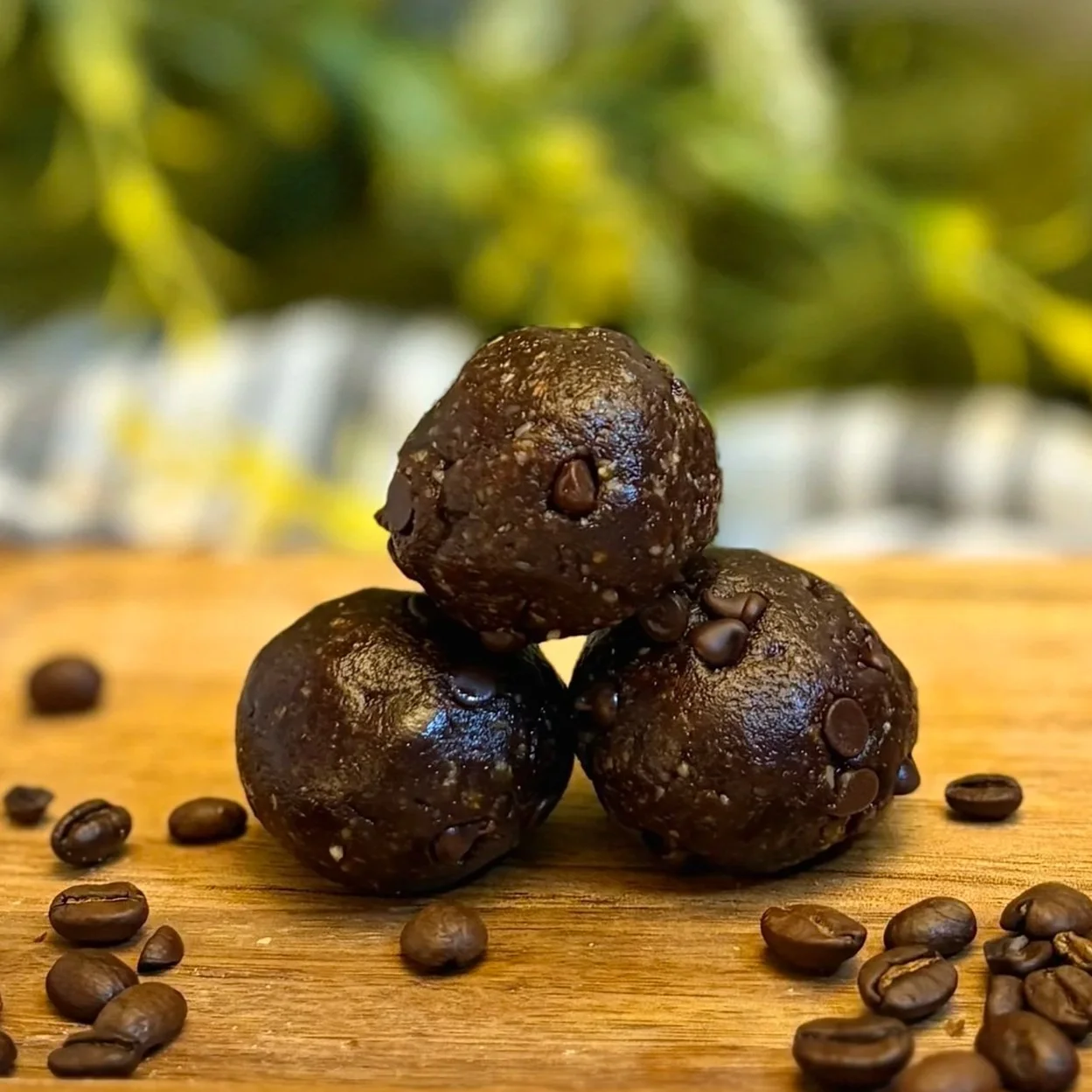 Dates, walnuts, espresso powder, cocoa powder, honey, semi sweet chocolate chips